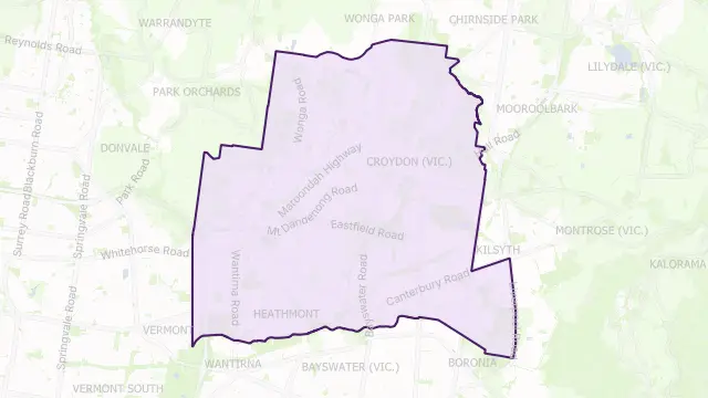 Maroondah Area Boundary Map